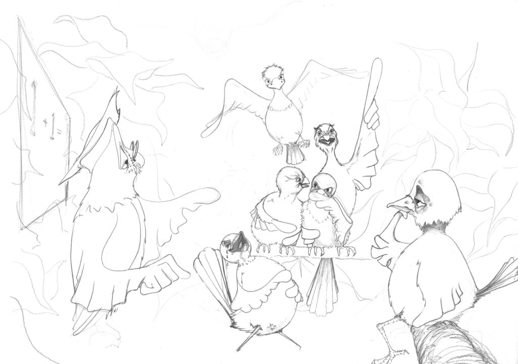 Tot slot nog wat schetsen van vreemde vogels in wording.